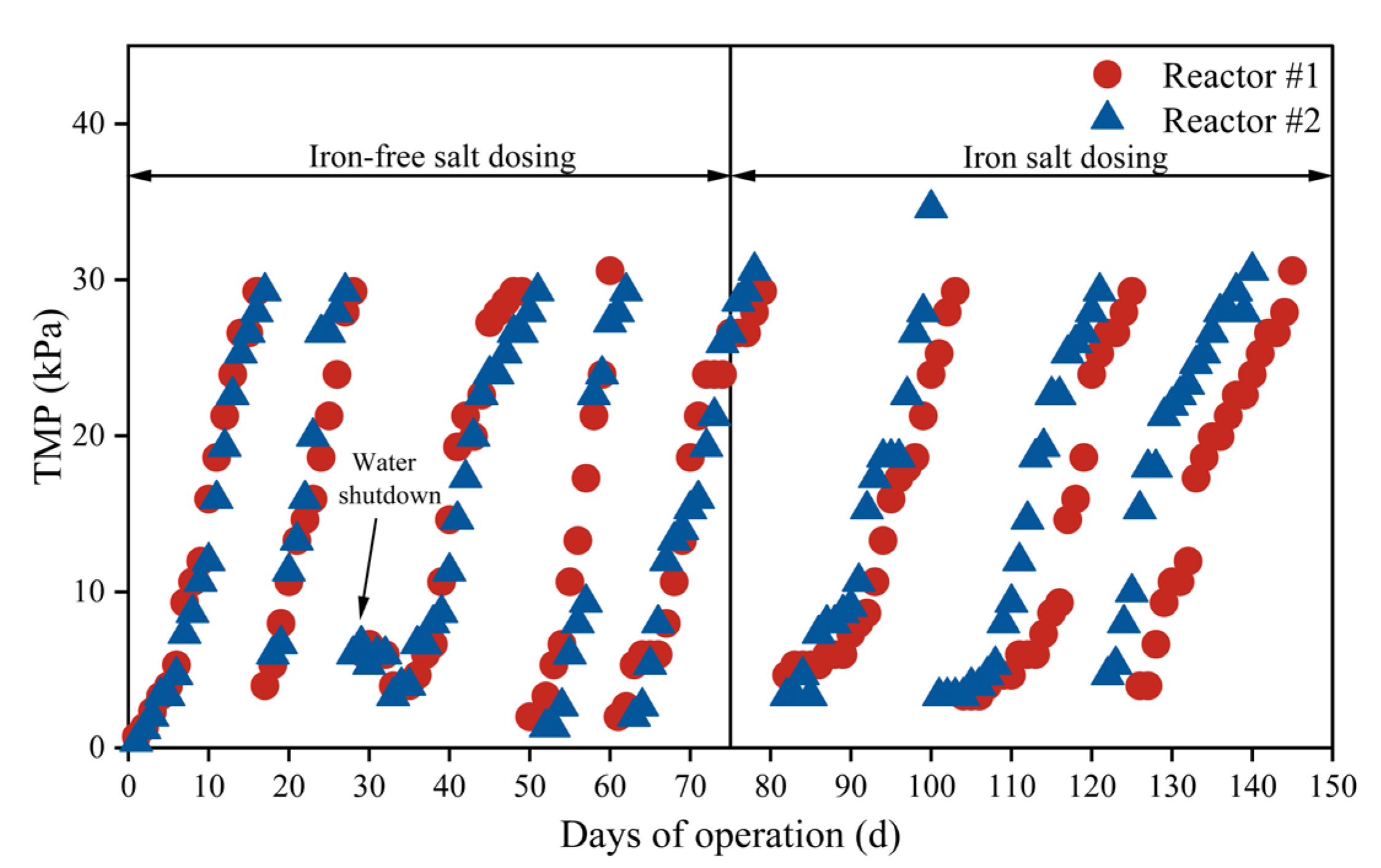 Wang, Q.; Zhang, B.; Sun, J.; Zheng, W.; Zhang, J.; Wu, Z. Comprehensive Investigation of Iron Salt Effects on Membrane Bioreactor from Perspective of Controlling Iron Leakage. Membranes 2025, 15, 297. https://doi.org/10.3390/membranes15100297