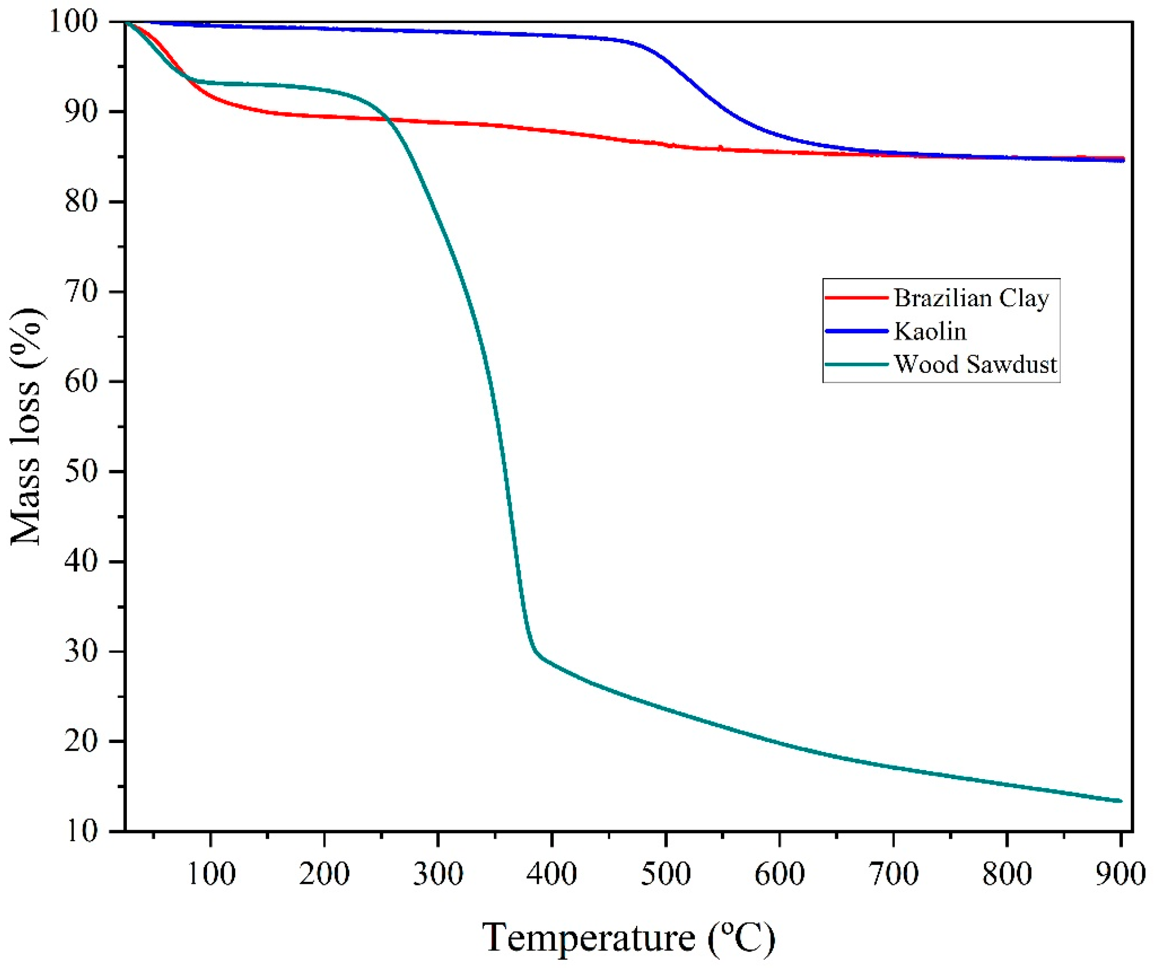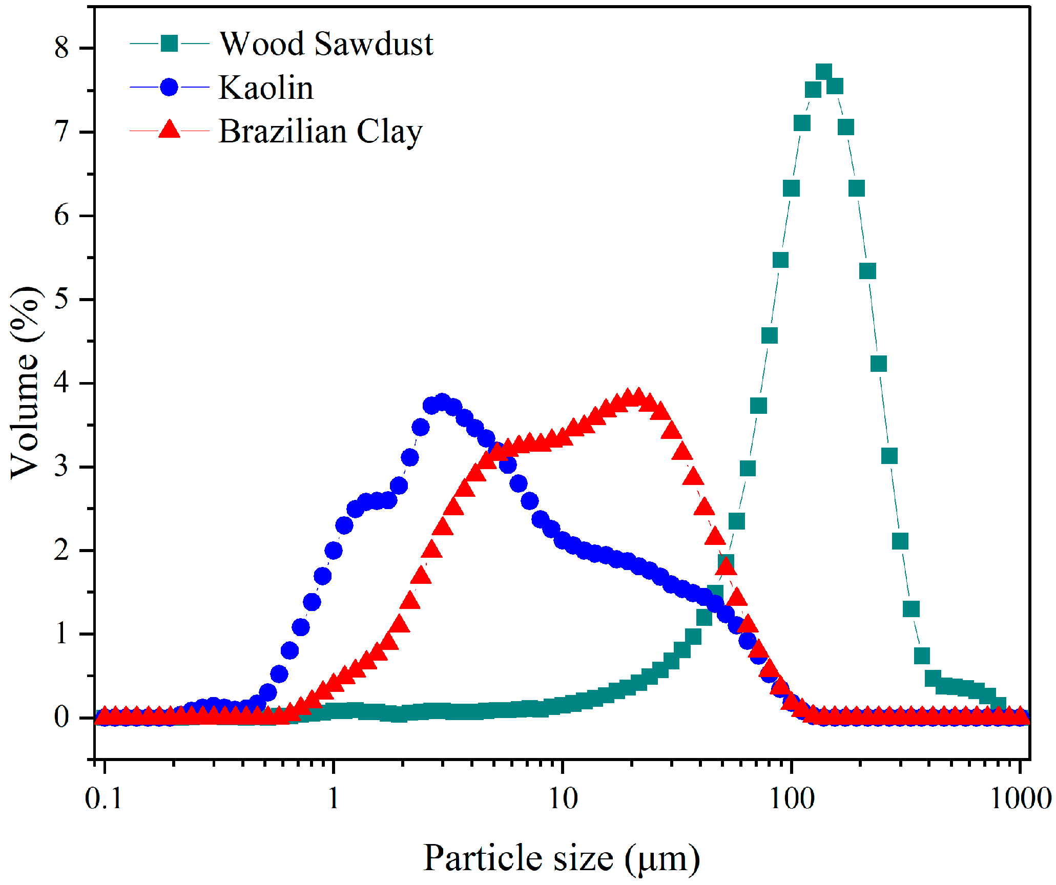 Formulations | Brazilian Clay (%) | Kaolin (%) | Pore-Forming Agent Wood Sawdust (%) |