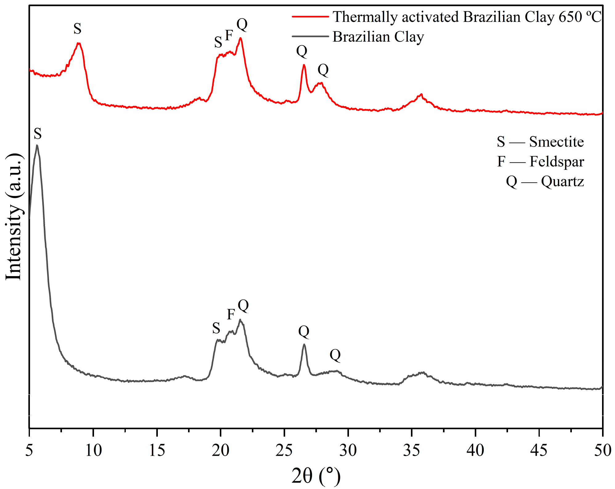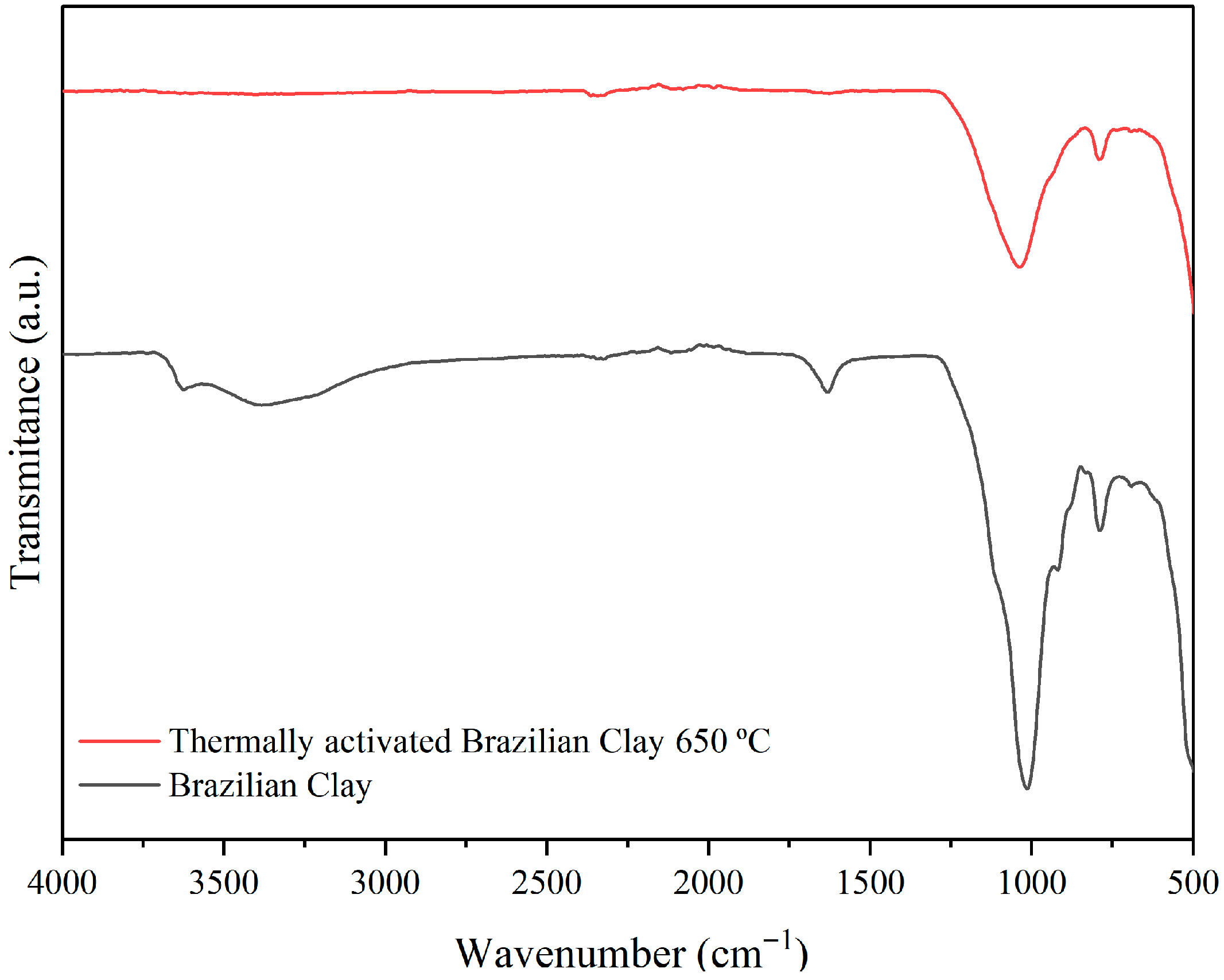 Brazilian clay | 71.79 | 14.25 | 2.18 | 1.05 | 14.25 | - | 15.23 |
