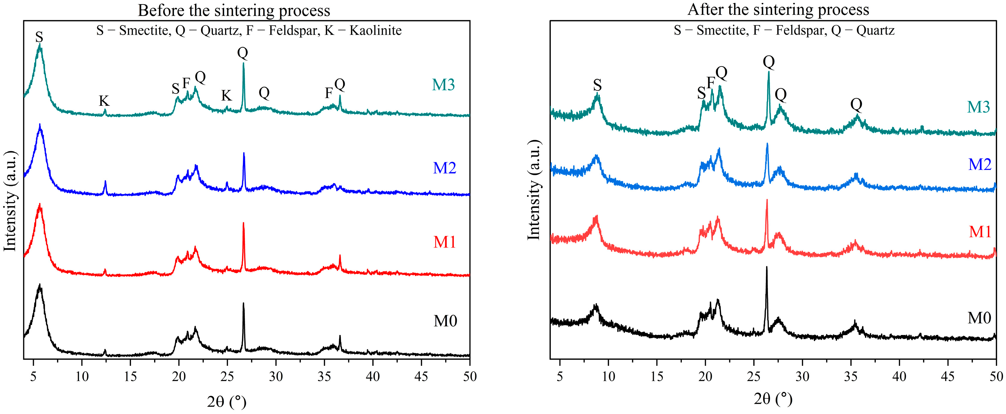 - Kumar, A.; Lingfa, P. Sodium bentonite and kaolin clays: Comparative study on their FT-IR, XRF, and XRD. Mater. Today Proc. 2019, 22, 737–742. [Google Scholar] [CrossRef]