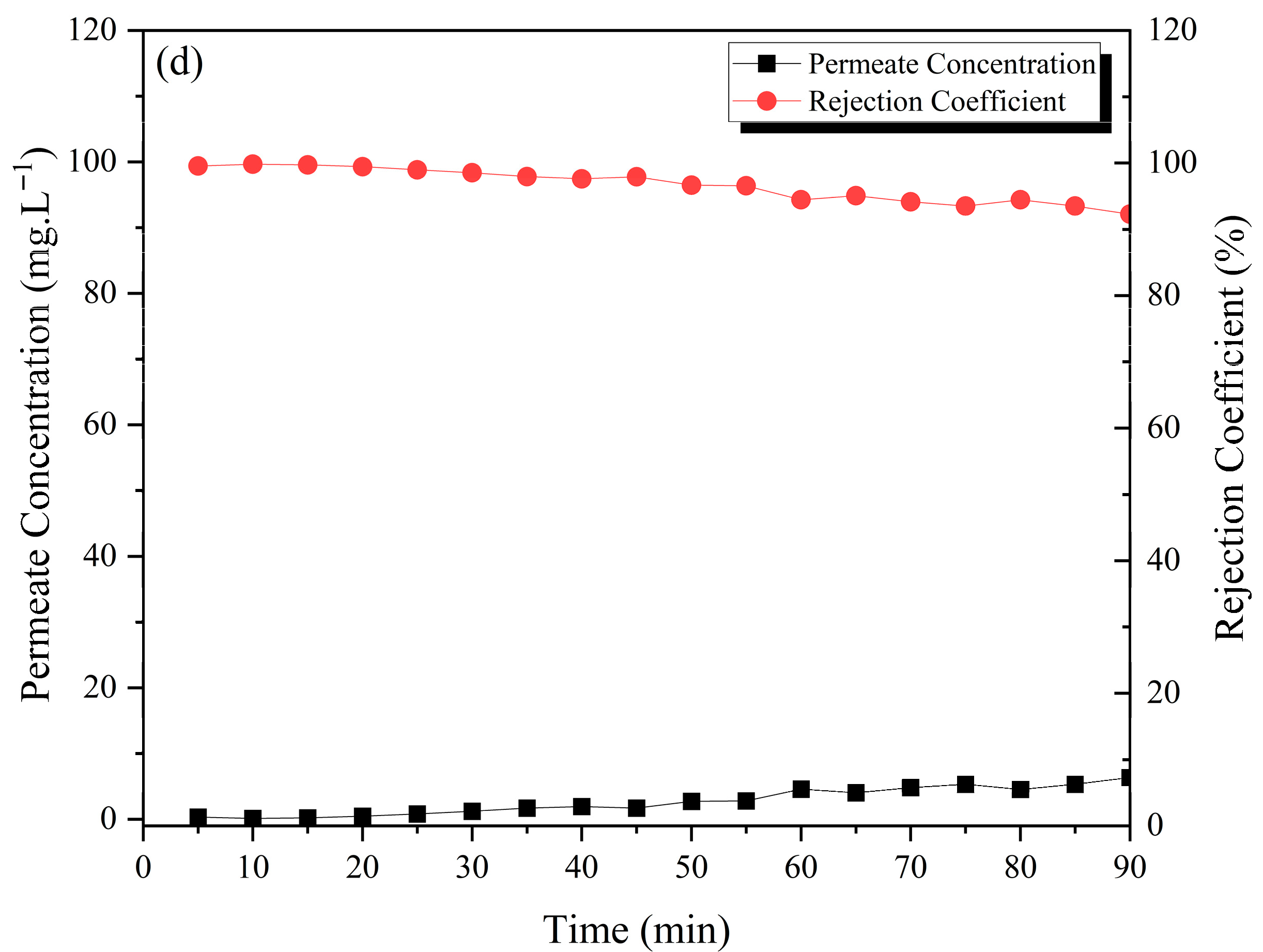 3.4. Treatment of Methylene Blue Wastewater by Ceramic Membranes