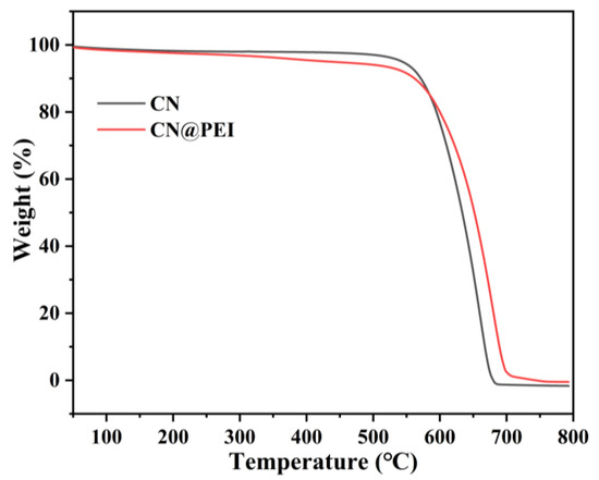 TGA curves of CN and CN@PEI nanosheets.