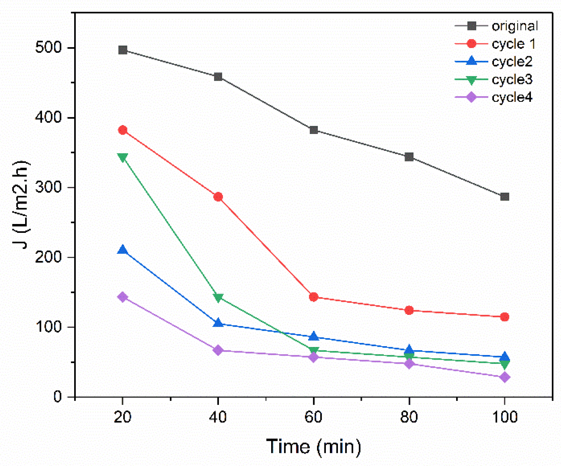 3.4. Backwash and Regeneration of the Membrane