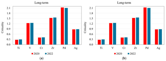 Comparison of (a) short-term and (b) long-term criticality values, according to indexes of 2020 and 2022.
