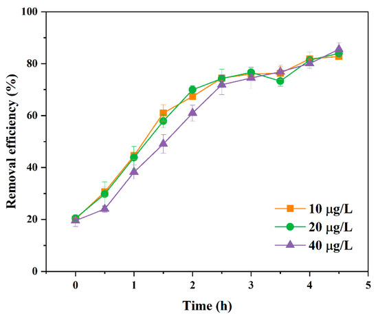 where C0 and Ce represent the Chl-a concentrations in the feed and effluent, respectively.