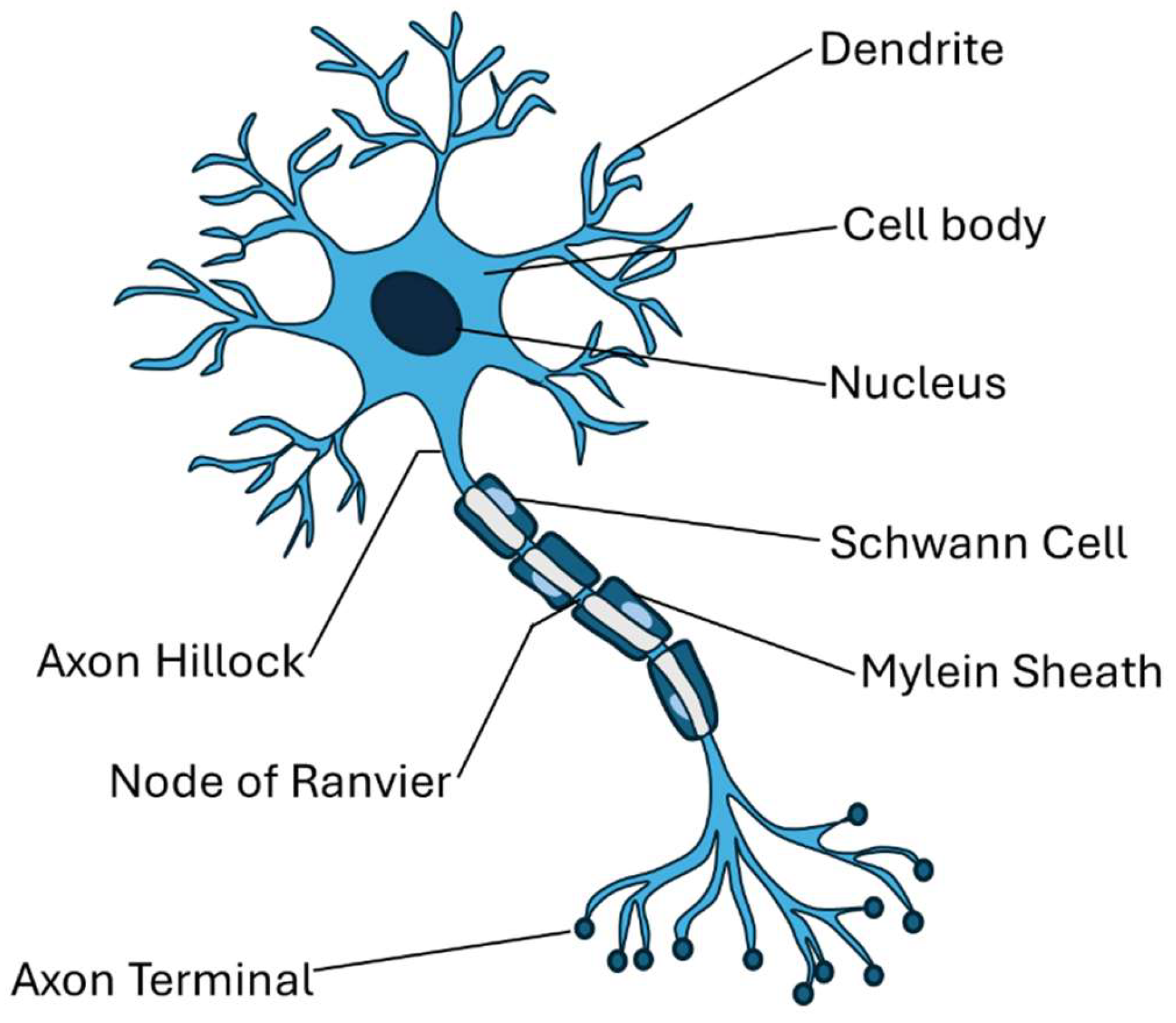 Figure 5. Neuron structure with myelin sheath and Schwann cells.