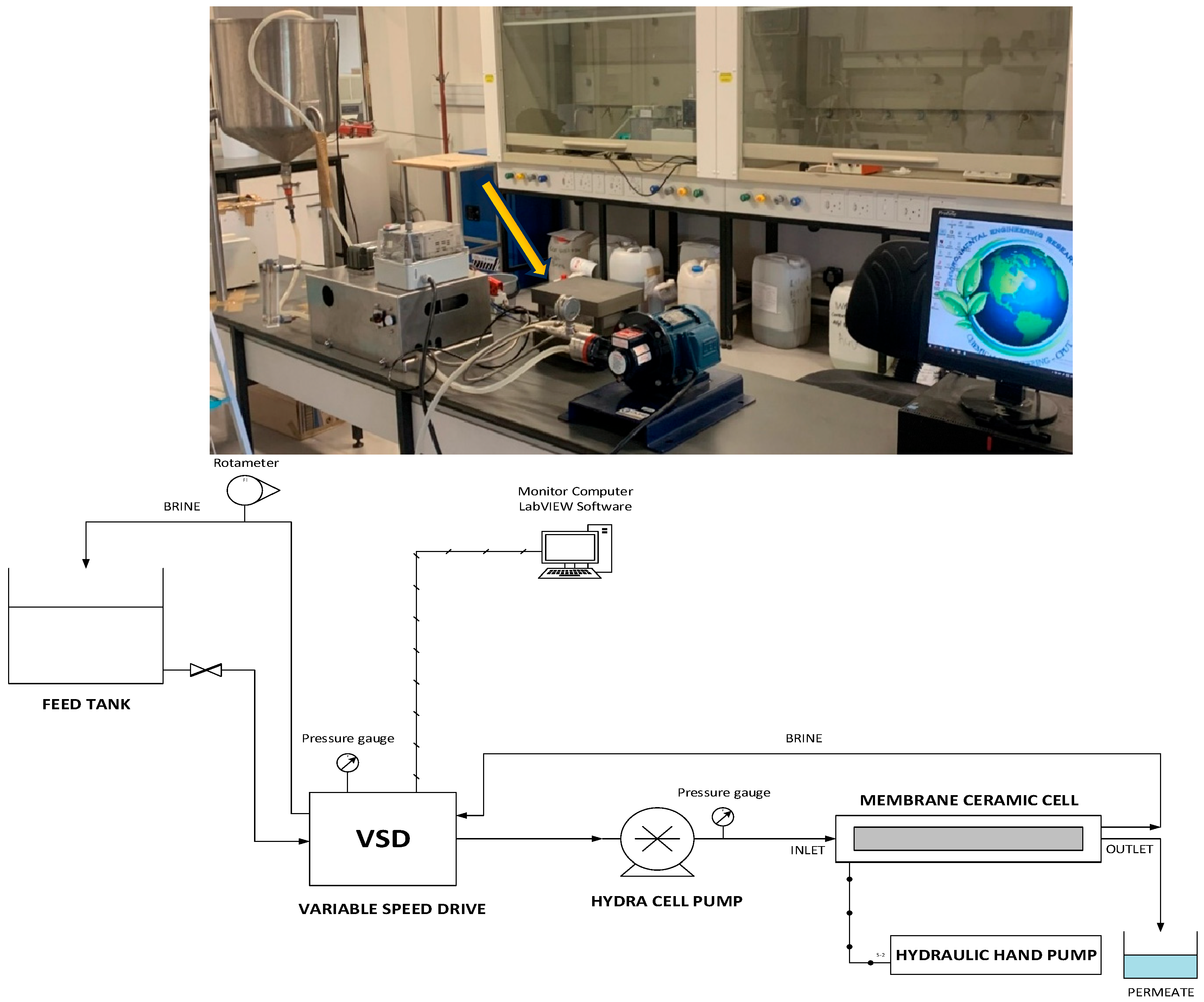 - Mallah, N.B.; Shah, A.A.; Pirzada, A.M.; Ali, I.; Ullman, J.L.; Mahar, R.B.; Khan, M.I. Development of Antifouling Polyvinylidene Fluoride and Cellulose Acetate Nanocomposite Membranes for Wastewater Treatment Using a Membrane Bioreactor. Water 2025, 17, 1767. [Google Scholar] [CrossRef]