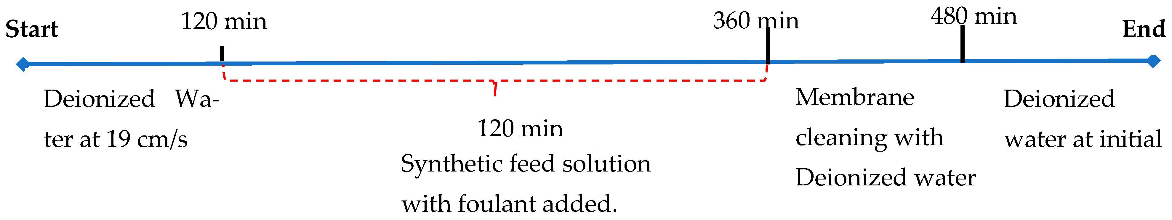 Inorganic fouling | Sodium bicarbonate | 100 mg L−1 |