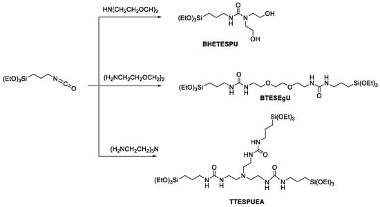 Sol formation by copolymerization of BHETESPU, BTESEgU, and TTESUEA with BTESPA.