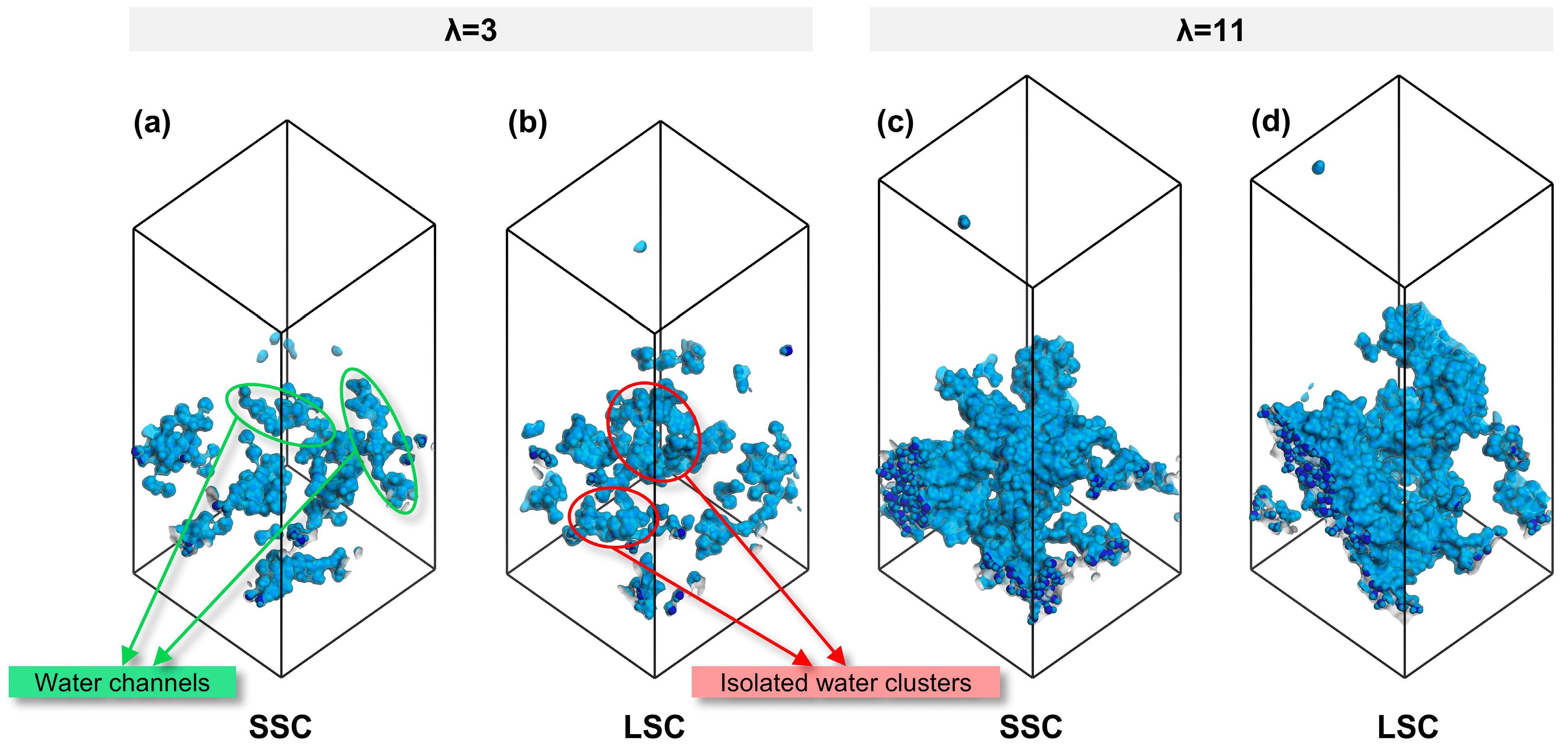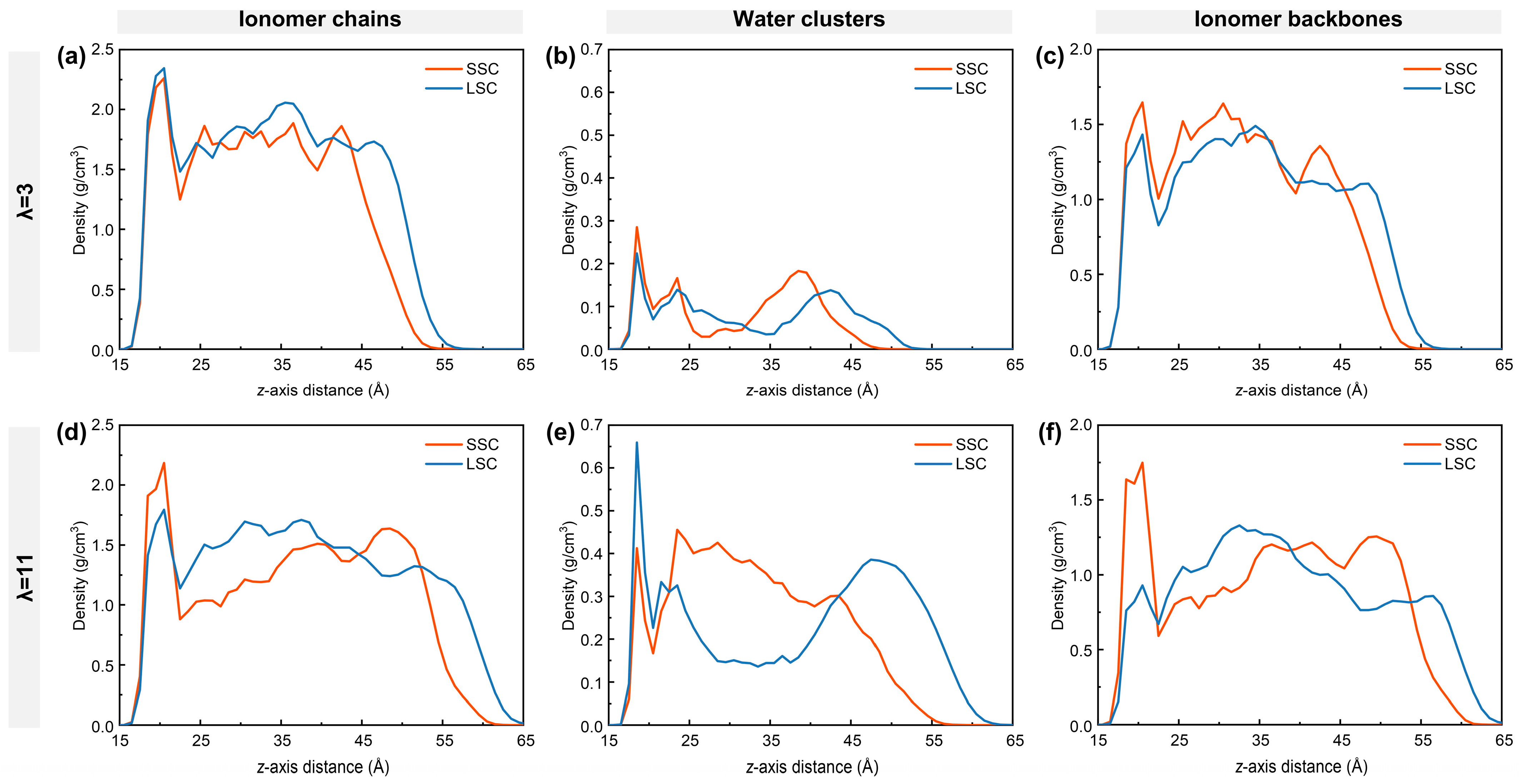 APA StyleWei, G., Huang, J., Yu, L., Zhou, J., You, J., Ling, Z., Ye, S., & Zhang, J. (2025). Comparative Study on Structural and Transport Properties of SSC and LSC PFSA Ionomers in PEMFCs with Coexistence of O2 and N2: Molecular Dynamics Simulation Approach. Membranes, 15(11), 324. https://doi.org/10.3390/membranes15110324