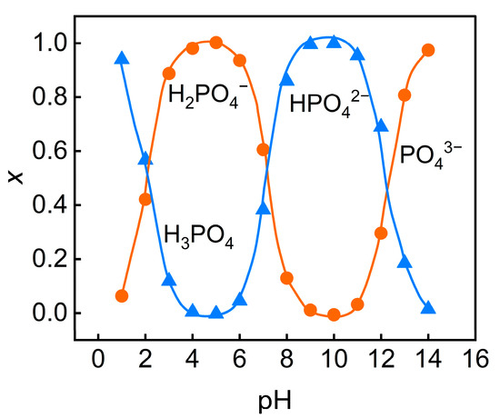 The Henderson–Hasselbalch equation was employed to systematically predict and analyze the distribution characteristics of various phosphate species (H3PO4, H2PO4−, HPO42−, PO43−) in wastewater under different pH conditions.
