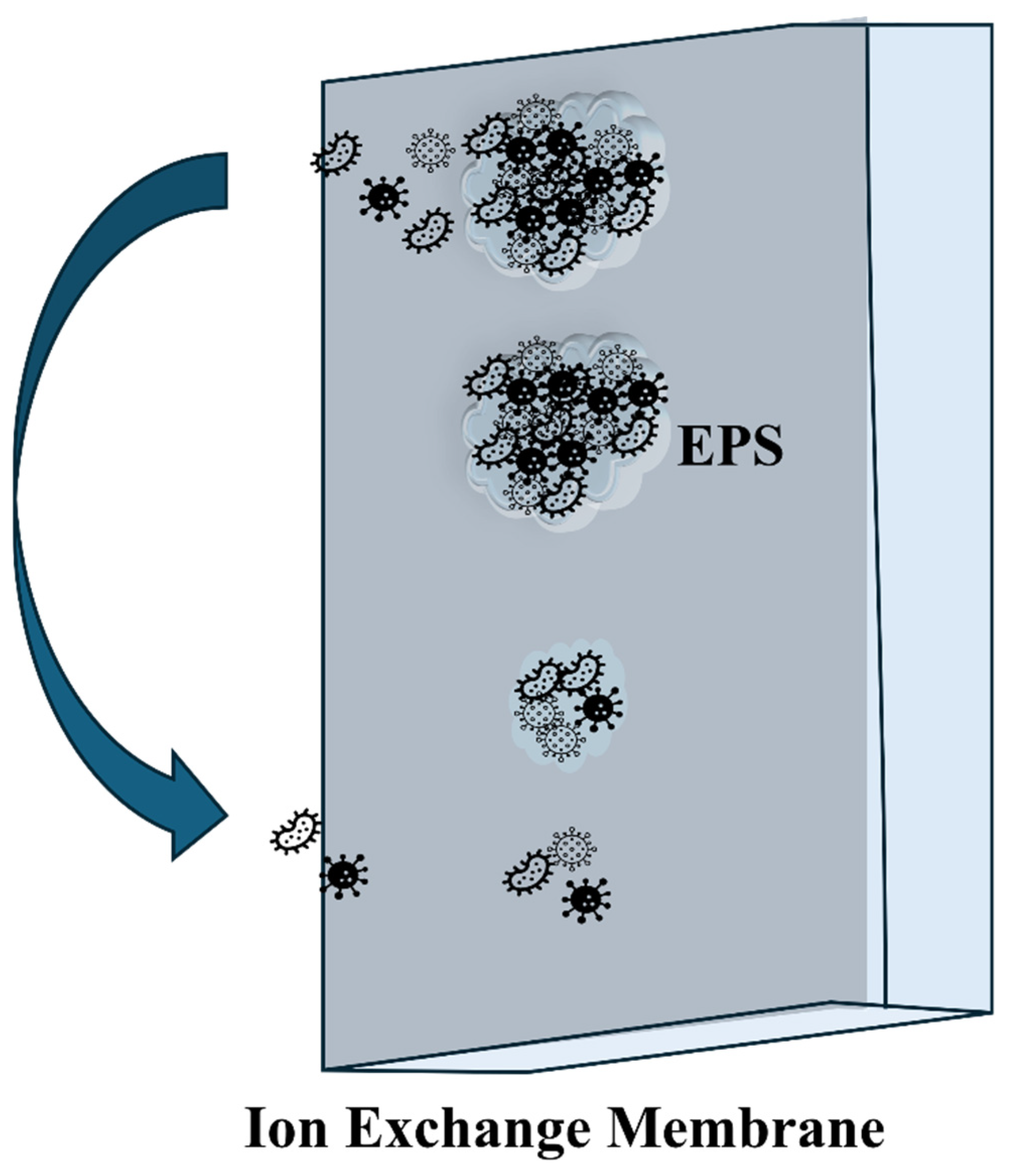 - Sustainability and Scalable Fabrication: Future research should focus on the development of low-cost, eco-friendly membrane materials and fabrication processes to ensure the long-term viability of BEC systems. This includes investigating green synthesis techniques, biodegradable membrane materials, and energy-efficient fabrication methods. Since even with efforts to develop anti-biofouling membranes that mitigate biofouling growth, membrane performance will still deteriorate over time, eventually requiring the replacement of fouled modules.