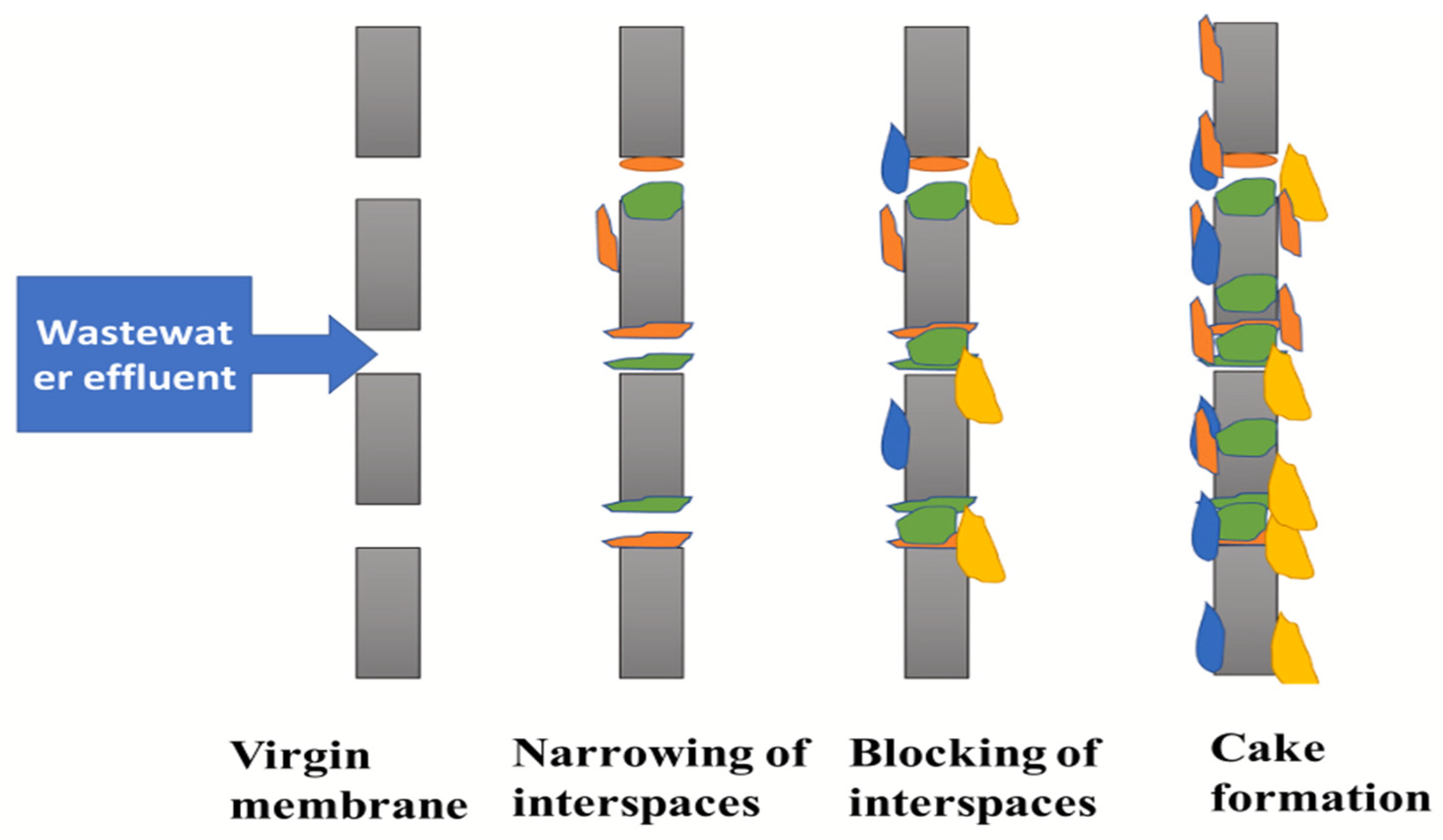 - Material Innovation and Surface Engineering: The development of highly hydrophilic, conductive, and antimicrobial membranes is crucial for improving biofouling resistance. A promising approach is the incorporation of nanocomposite materials, such as functionalized graphene derivatives, metal–organic frameworks (MOFs), carbon nanotubes, and bio-inspired coatings, into the polymer matrix. Ceramic membranes have demonstrated superior chemical and mechanical stability, making them promising alternatives for long-term biofouling mitigation. Moreover, electro-assisted ceramic membranes can further enhance antifouling performance.