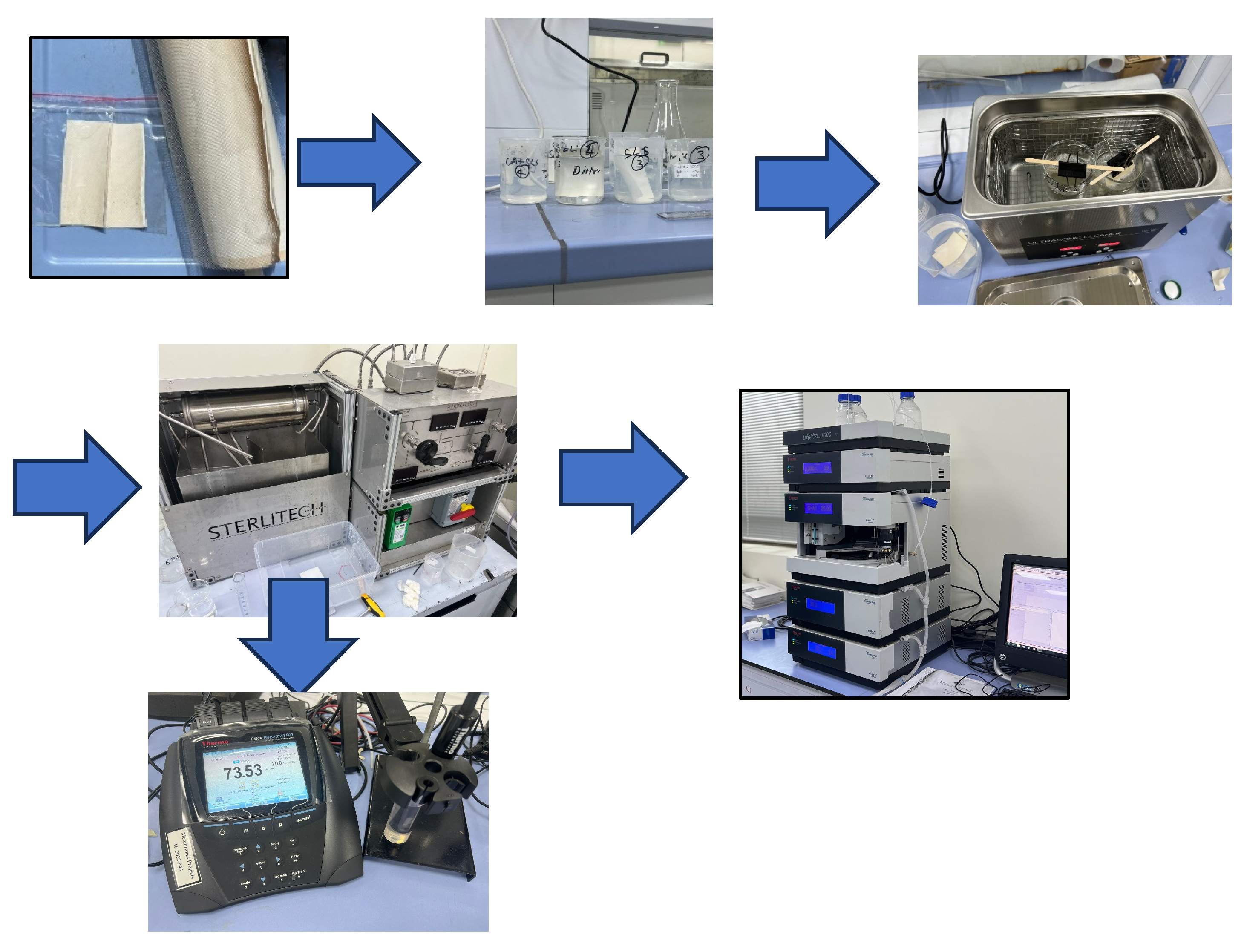 2.3. Chemo-Ultrasonication-Assisted Cleaning of Dialysate DEoLM