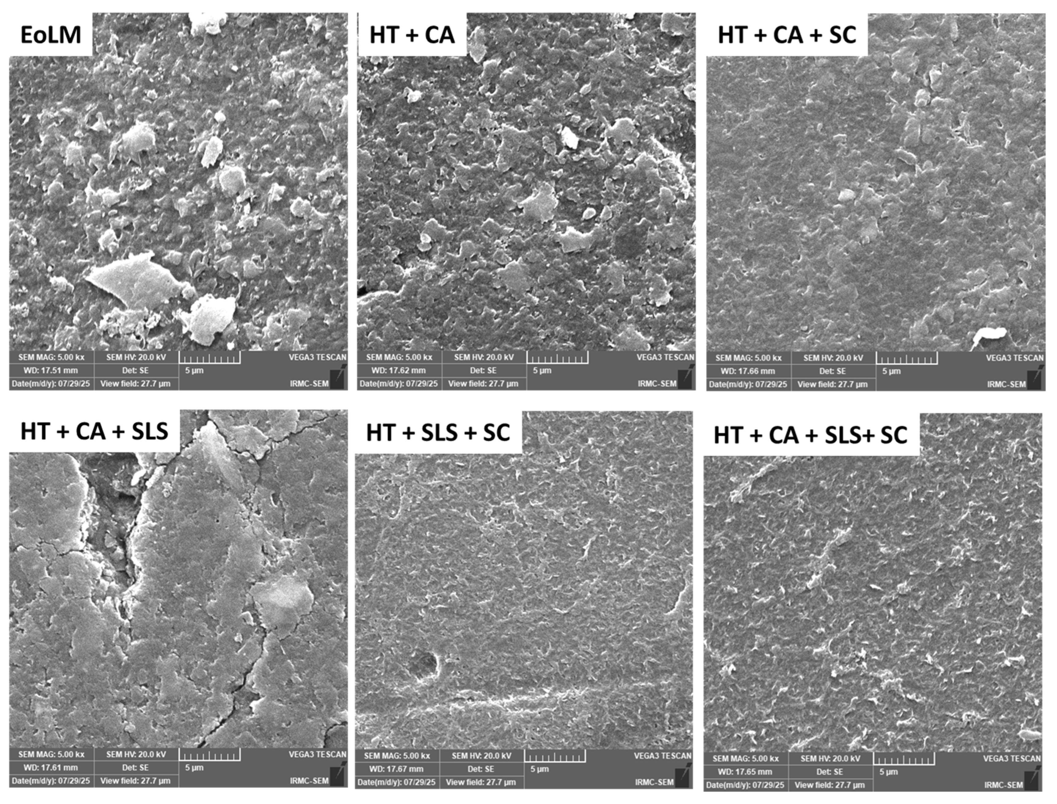 3.2. Performance of Chemo-Sonication-Assisted Cleaning of EoL