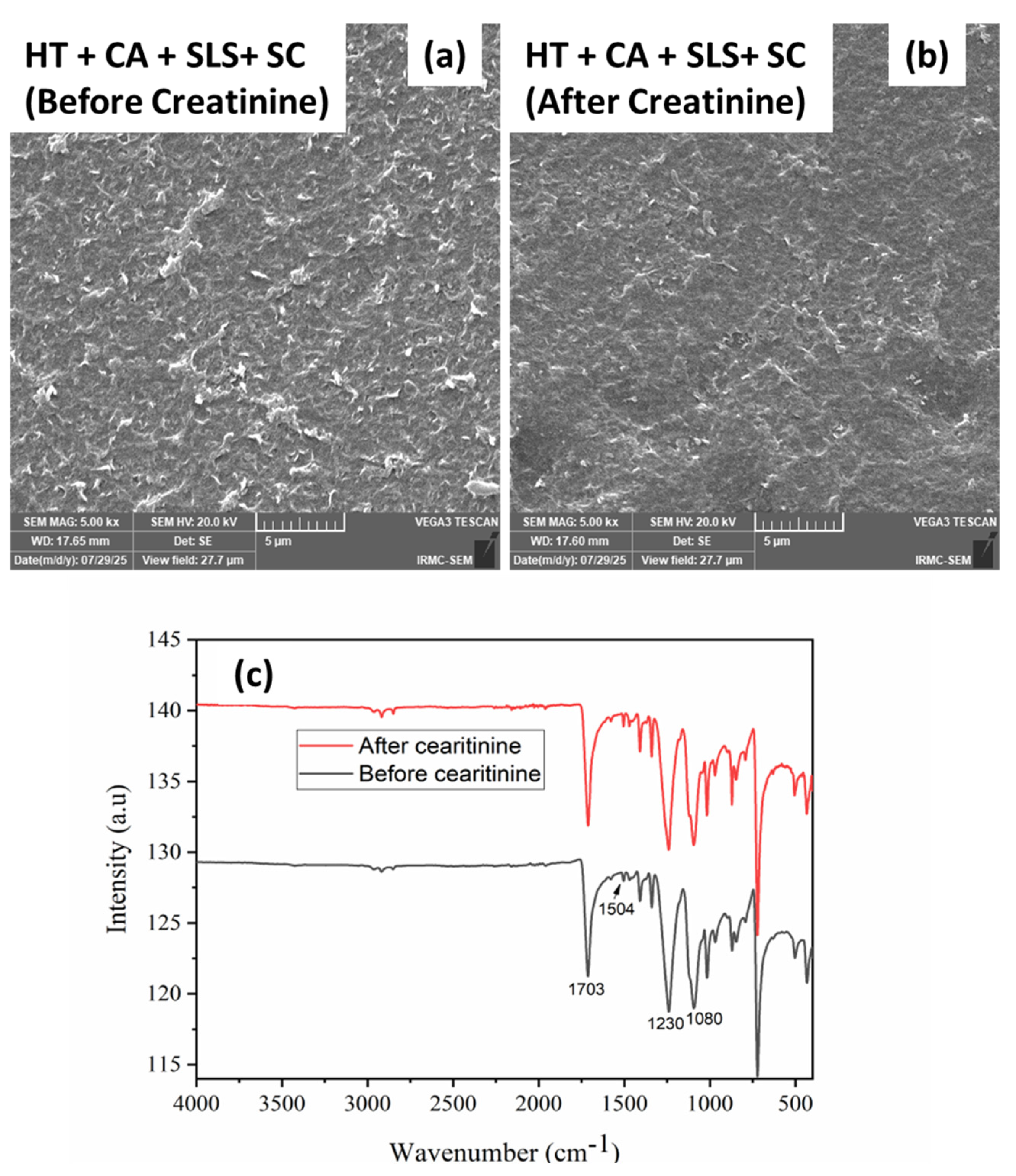 2.6. Creatinine Concentration and Conductivity Measurements
