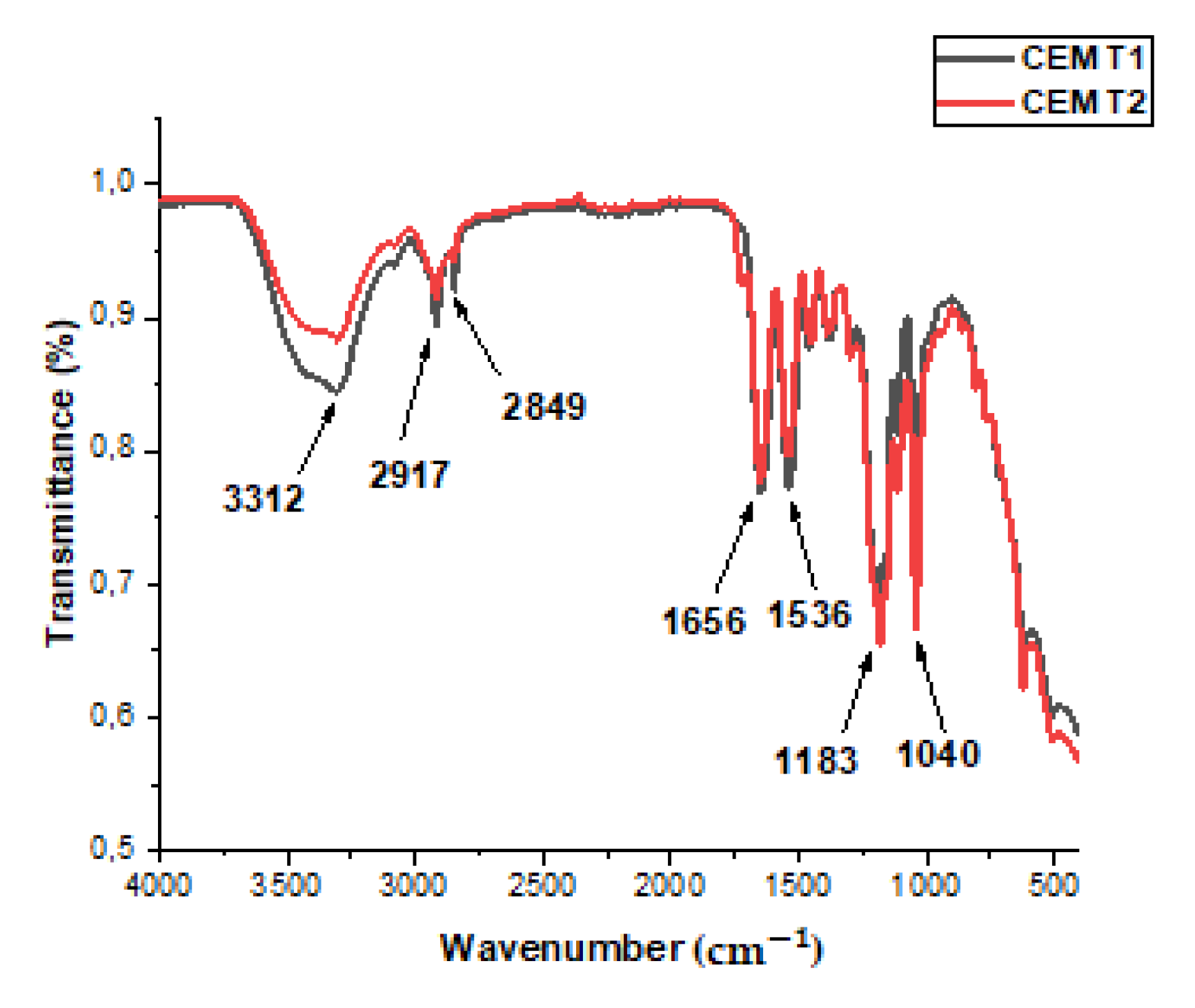 | Thickness of Air-Dried Membrane (µm) | 120 ± 5 | 165 ± 5 | [55,59] |