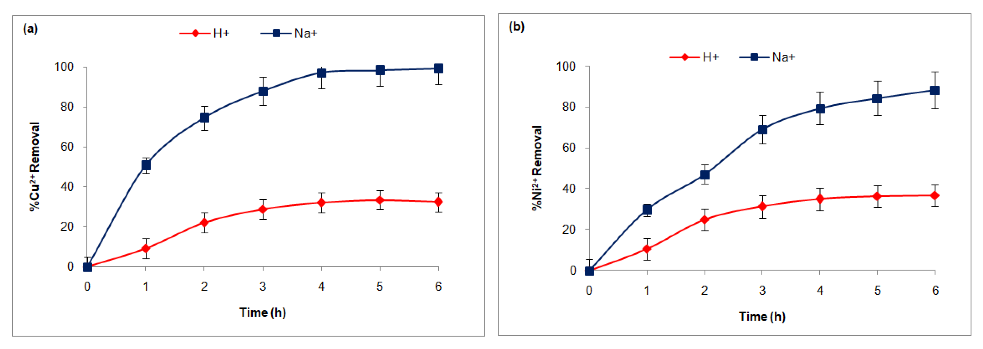 - Radovanovic, D.; Dikić, J.; Štulović, M.; Anđić, Z.; Kamberović, Ž.; Jevtić, S. Sorption of Pb2+, Zn2+, Cu2+ and Ni2+ Ions on Na-Enriched Natural Zeolite for Wastewater Treatment Process: A Kinetic Approach. Metall. Mater. Eng. 2023, 29, 20–35. [Google Scholar] [CrossRef]