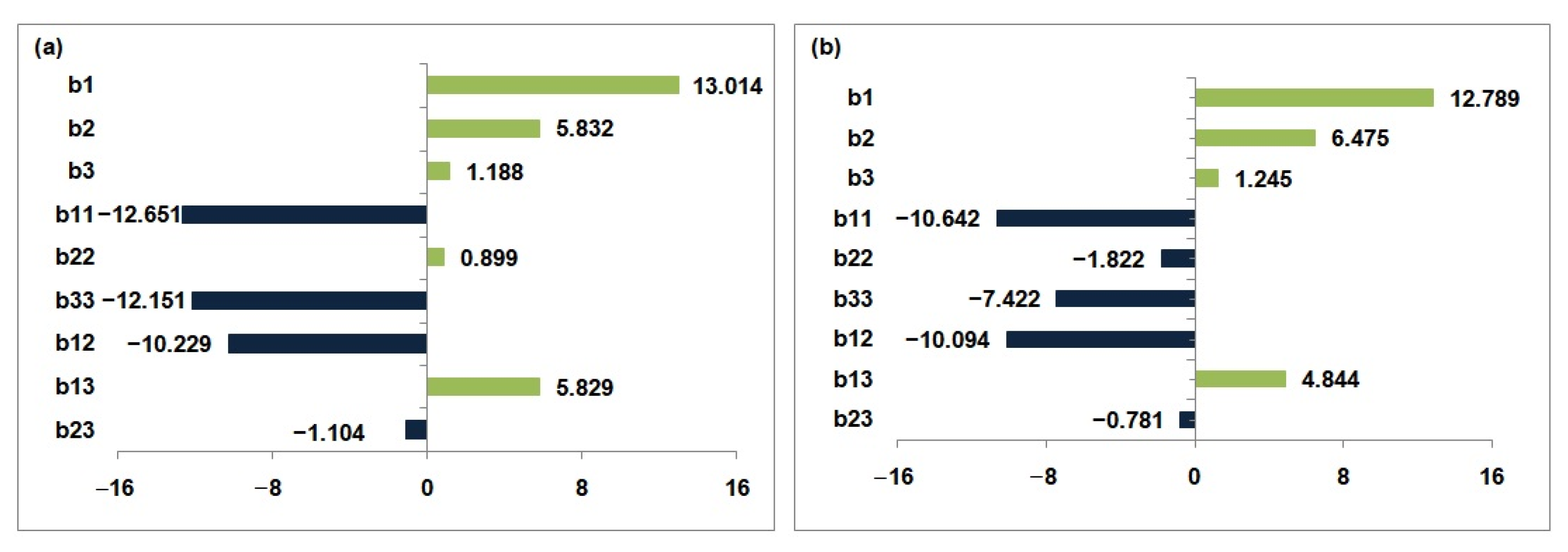 | b11 | −12.651 | 0.0000 | −10.642 | 0.0000 |