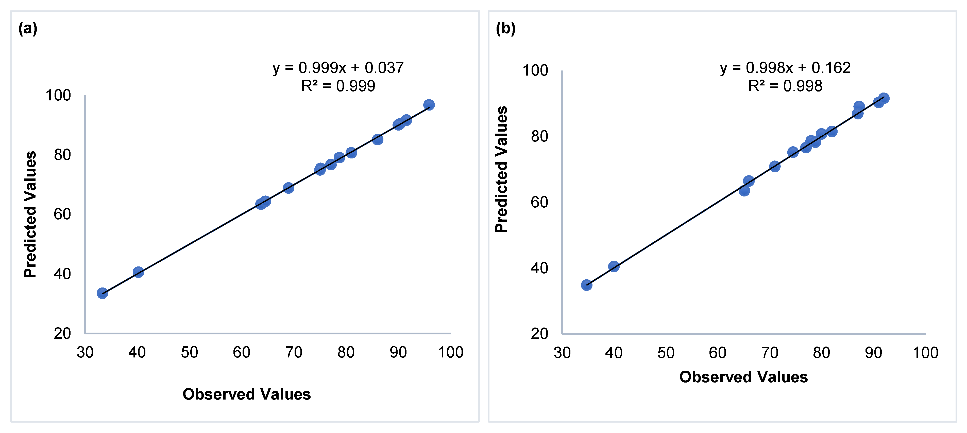3.4. Optimization by Response Surface Methodology Using Central Composite Design (CCD)