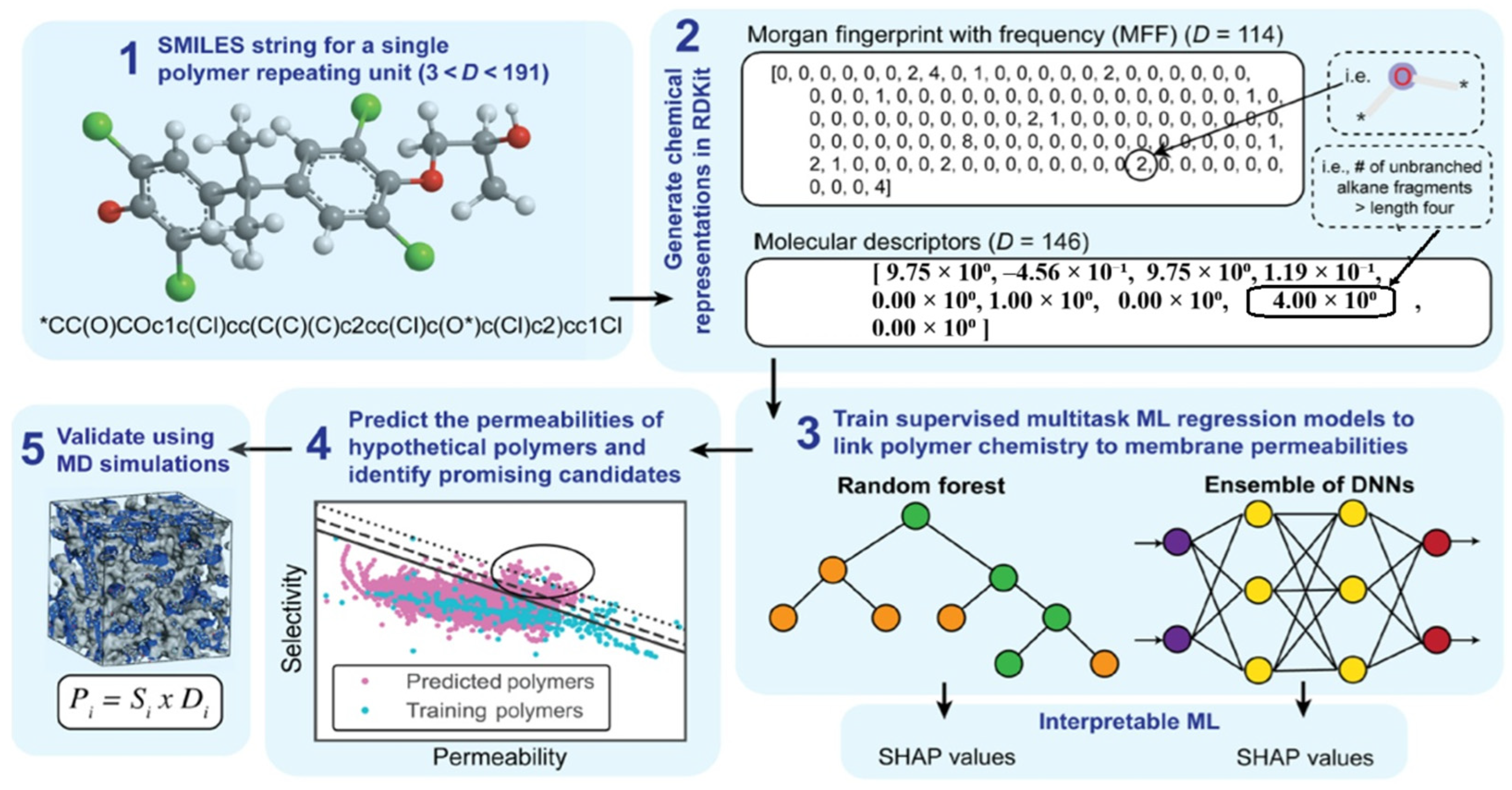 - Yang, J.; Tao, L.; He, J.; McCutcheon, J.R.; Li, Y. Machine learning enables interpretable discovery of innovative polymers for gas separation membranes. Sci. Adv. 2022, 8, eabn9545. [Google Scholar] [CrossRef] [PubMed]