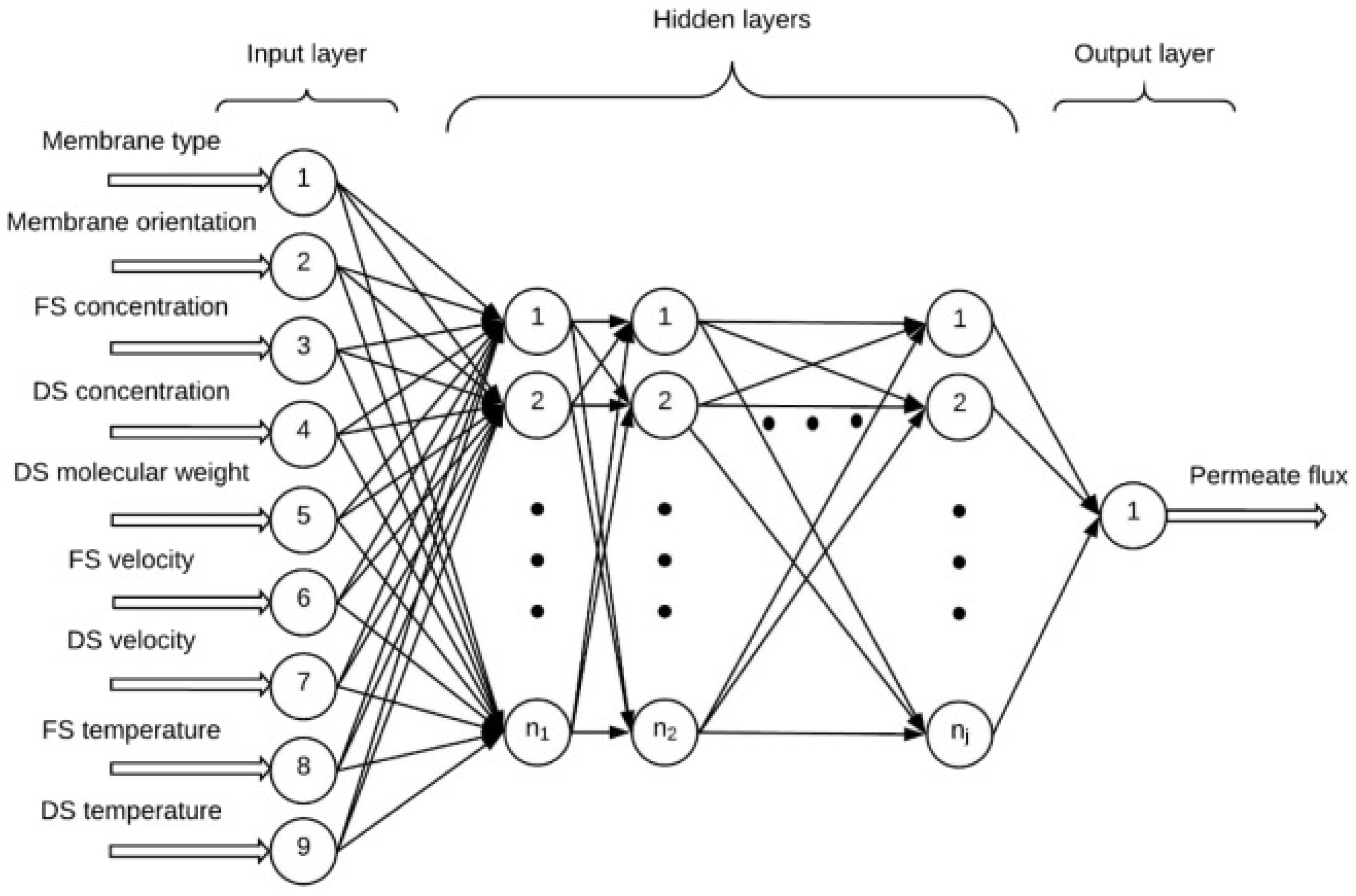 - Jawad, J.; Hawari, A.H.; Zaidi, S. Modeling of forward osmosis process using artificial neural networks (ANN) to predict the permeate flux. Desalination 2020, 484, 114427. [Google Scholar] [CrossRef]