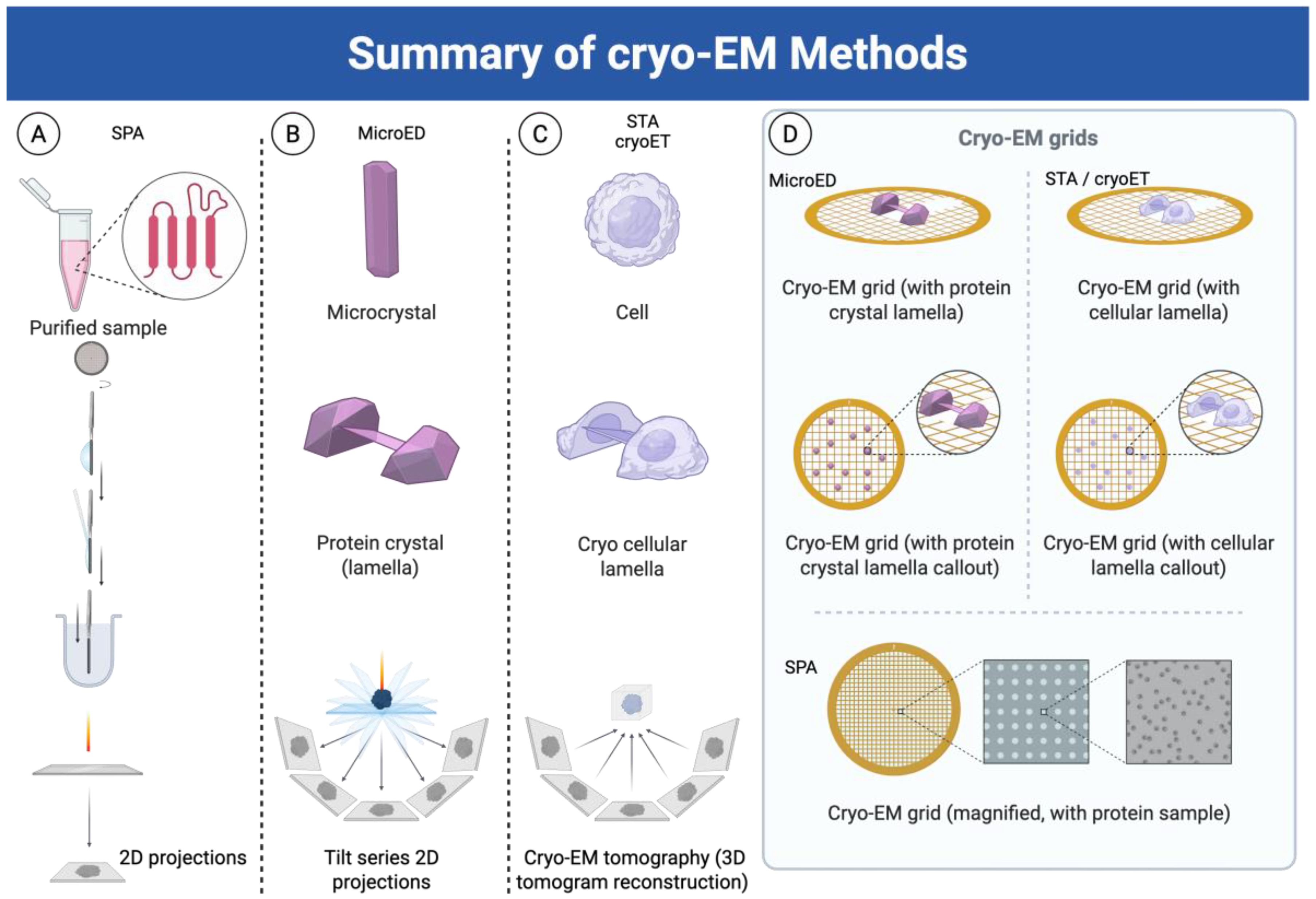- Bu, G.; Nannenga, B.L. MicroED Sample PreparationSample Preparation and Data Collection For Protein CrystalsCrystals. In cryoEM: Methods and Protocols; Gonen, T., Nannenga, B.L., Eds.; Methods in Molecular Biology; Springer: New York, NY, USA, 2021; pp. 287–297. ISBN 978-1-0716-0966-8. [Google Scholar]