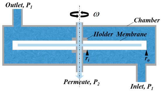 The RDF process, as shown in Figure 1, is similar to CFF, except for the rotation of the membrane element. In addition, the feed circulation flow in RDF is much lower than that in CFF. In CFF, the feed circulation flow is typically 50–100 times the treating capacity, while in RDF, it is only 10%.
