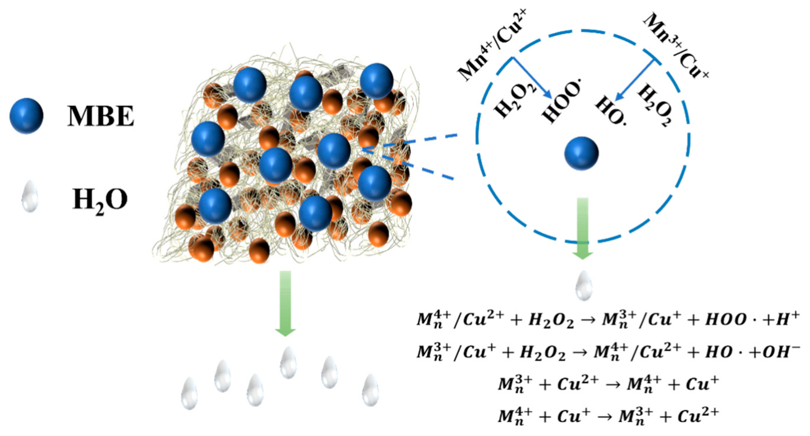 - Liu, X.; Wang, L.; Li, J.; Li, R.; He, R.; Gao, W.; Yu, N. Preparation of Heterogeneous Fenton Catalysts Cu-Doped MnO2 for Enhanced Degradation of Dyes in Wastewater. Nanomaterials 2024, 14, 833. [Google Scholar] [CrossRef] [PubMed]
