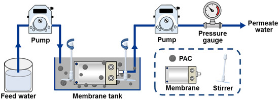 Schematic diagram of the experimental setup for the hybrid adsorption–microfiltration process.
