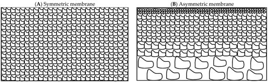 Schematic of cross-section of a (A) symmetric and (B) asymmetric membrane.
