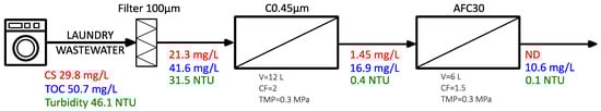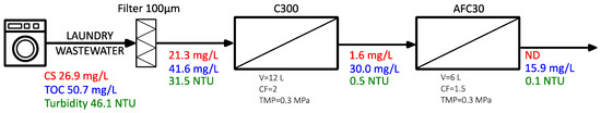 - Šostar-Turk, S.; Petrinić, I.; Simonič, M. Laundry wastewater treatment using coagulation and membrane filtration. Resour. Conserv. Recycl. 2005, 44, 185–196. [Google Scholar] [CrossRef]