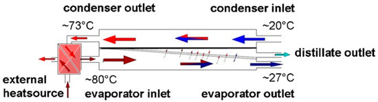 Heat recovery inside the module in AGMD. Reproduced from [35] with the permission from the Publisher. Copyright 2011, Elsevier.