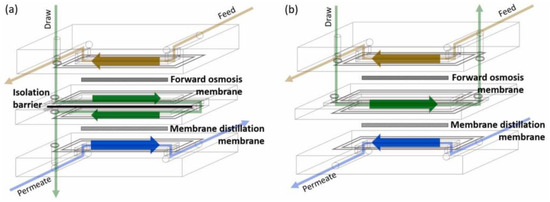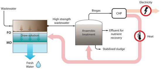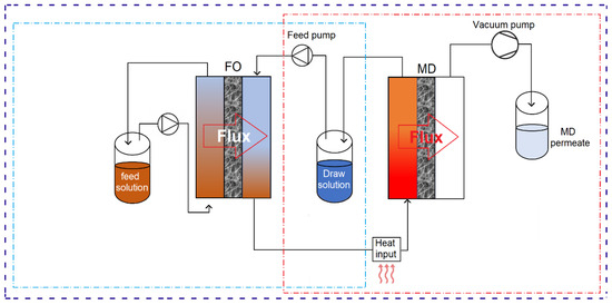 - Li, J.; Hou, D.; Li, K.; Zhang, Y.; Wang, J.; Zhang, X. Domestic wastewater treatment by forward osmosis-membrane distillation (FO-MD) integrated system. Water Sci. Technol. 2018, 77, 1514–1523. [Google Scholar] [CrossRef]