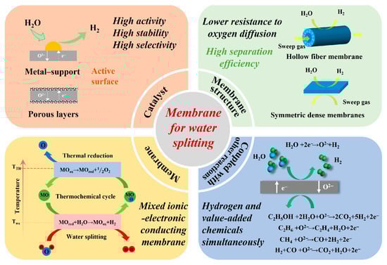 - Wang, B.; Li, T.; Wang, Z.; Othman, M.H.D.; Liu, S.; Xiao, R. A Review of Water Splitting Via Mixed Ionic–Electronic Conducting (Miec) Membrane Reactors. Green Chem. 2023, 25, 6930–6948. [Google Scholar] [CrossRef]