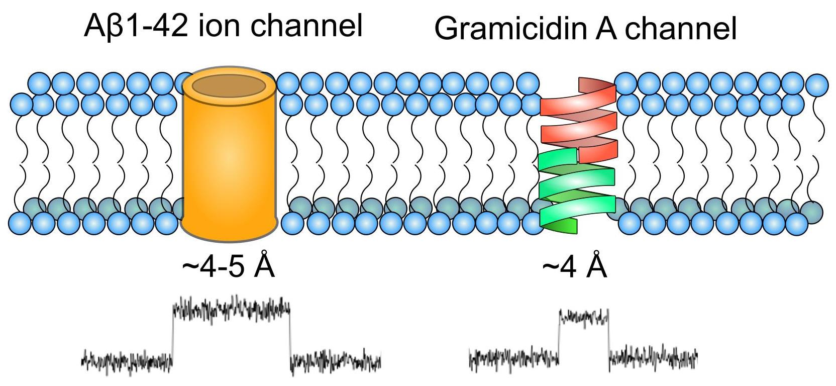 Amyloid β 1-42 Can Form Ion Channels as Small as Gramicidin in Model Lipid Membranes