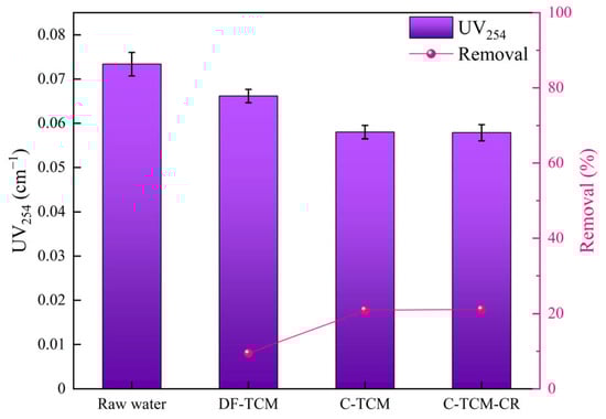 UV254 removal efficiency across the three processes.