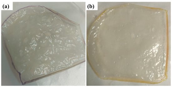 The dried PVA-CS-6 membranes had wrinkles, as shown in Figure 5, making micrometer measurement for dry thickness unreliable. So, the swelling degree of these membranes could not be accurately measured, and it is not reported.