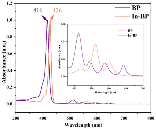 UV-Vis absorption spectra of BP and In-BP in DMF.