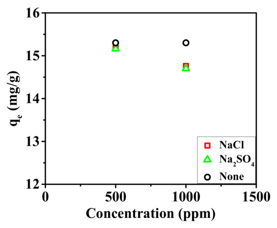 The effects of the competing ions on the adsorption of the nanofibrous composite membrane were also investigated, as shown in Figure 10.