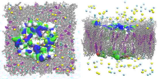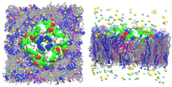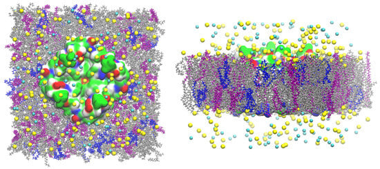 - Klauda, J.B.; Venable, R.M.; Freites, J.A.; O’Connor, J.W.; Tobias, D.J.; Mondragon-Ramirez, C.; Vorobyov, I.; MacKerell, A.D., Jr.; Pastor, R.W. Update of the CHARMM all-atom additive force field for lipids: Validation on six lipid types. J. Phys. Chem. B 2010, 114, 7830–7843. [Google Scholar] [CrossRef]