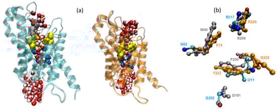- Smart, O.S.; Neduvelil, J.G.; Wang, X.; Wallace, B.A.; Sansom, M.S.P. HOLE: A program for the analysis of the pore dimensions of ion channel structural models. J. Mol. Graph. 1996, 14, 354–360. [Google Scholar] [CrossRef]