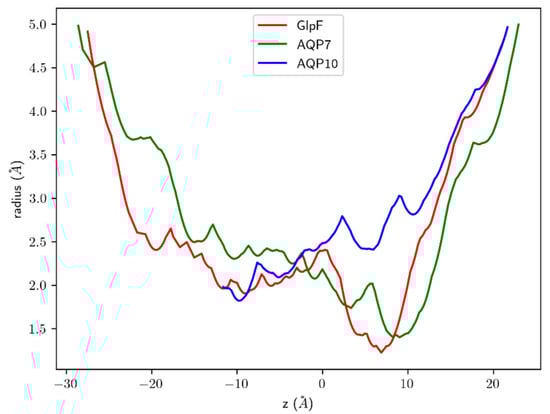 , the AQP10 channel’s radius was not computed, as its pore-forming residues fluctuate too much to allow reasonable accuracy.