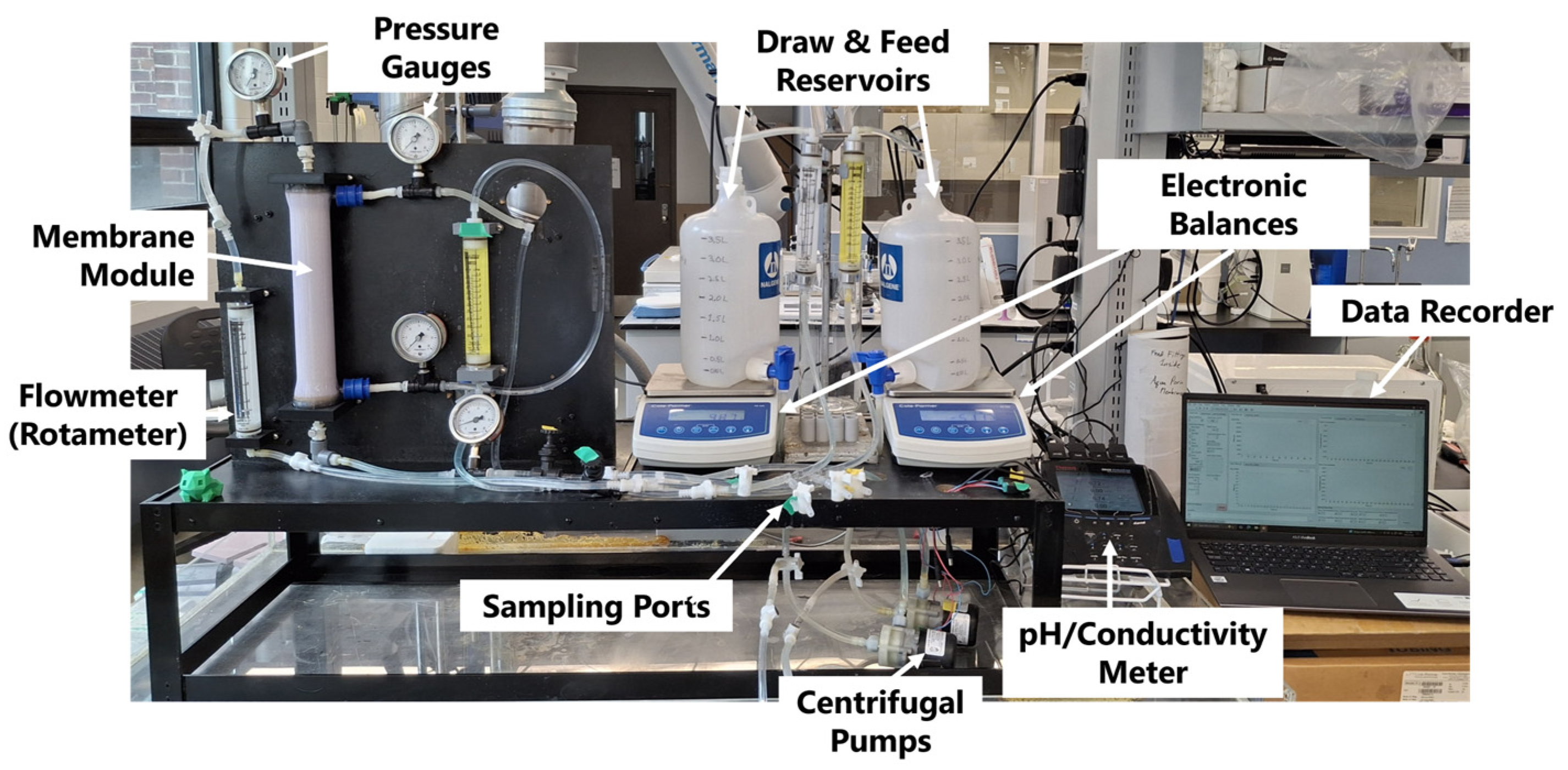 - Fluid Technology Solutions Inc. OsmoF2OTM FO Industrial Membrane. July 2018. Available online: https://ftsh2o.com/wp-content/uploads/2018/07/FTS_FO_Industrial-Membrane_FINAL-FTSCTA-02.pdf (accessed on 17 October 2025).