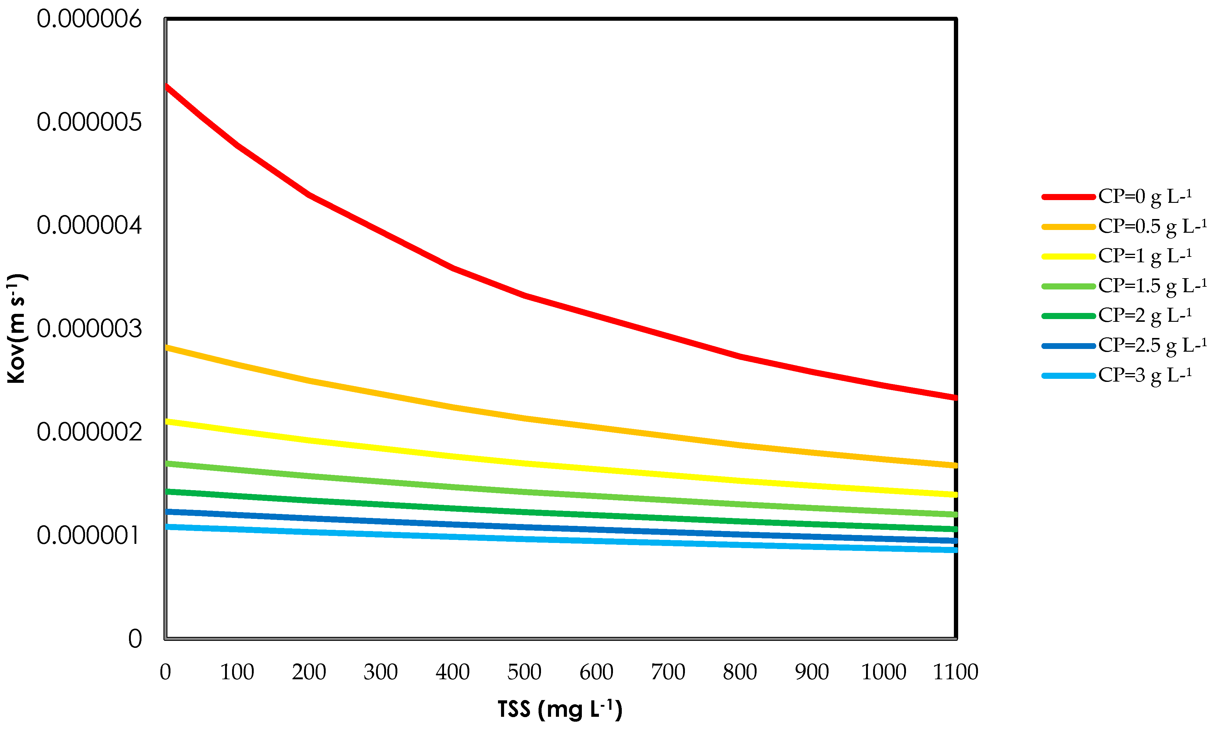 Kov by about 80%, whereas increasing TSS from 0 to 1100 mg L