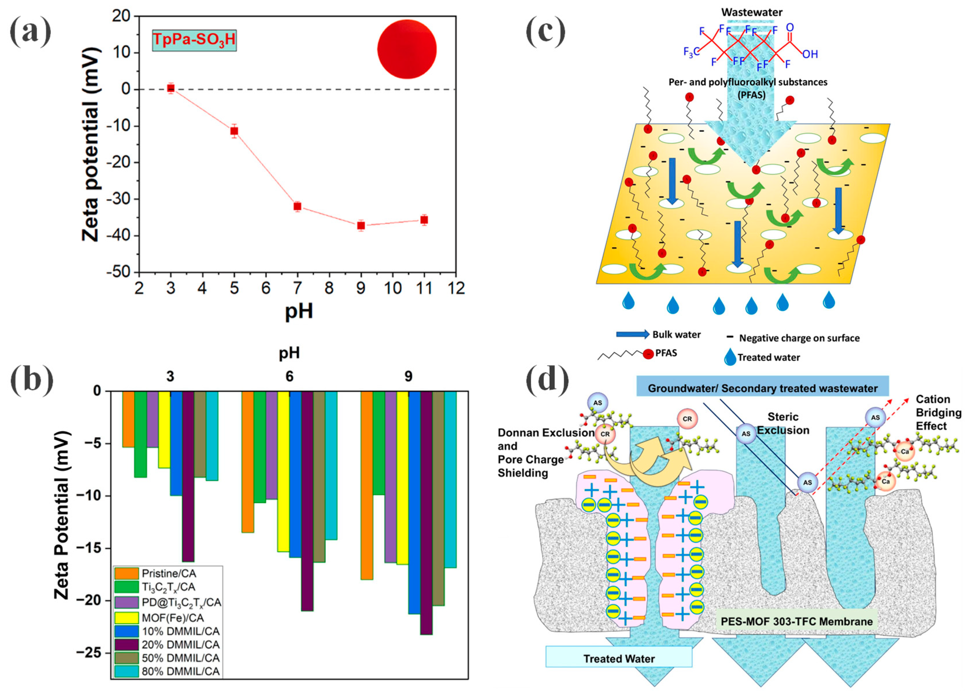 - Bi, Y.J.; Meng, X.M.; Tan, Z.J.; Geng, Q.Q.; Peng, J.X.; Yong, Q.Z.; Sun, X.J.; Guo, M.M.; Wang, X.P. A novel ZIF-L/PEI thin film nanocomposite membrane for removing perfluoroalkyl substances (PFASs) from water: Enhanced retention and high flux. Sci. Total Environ. 2024, 925, 171727. [Google Scholar] [CrossRef] [PubMed]