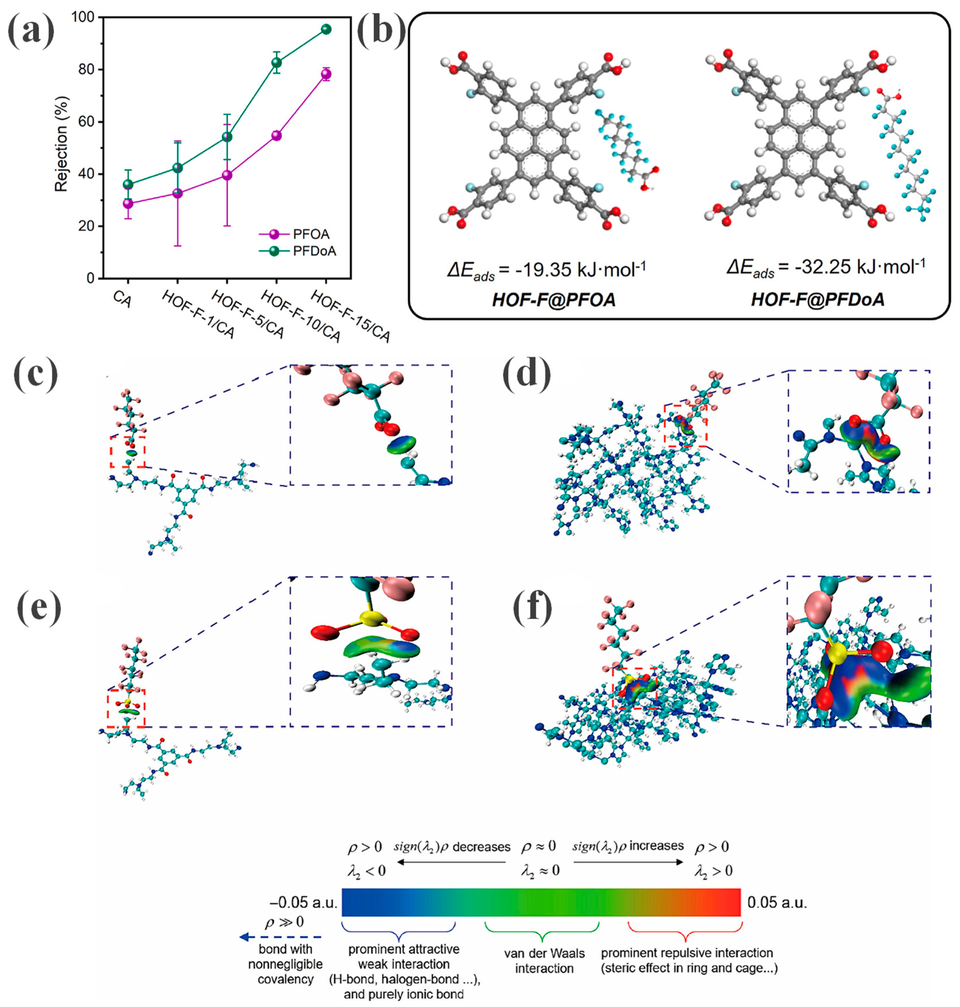 | HOF-F/CA | HOF | PFDoA, PFOA | 95.4, 78.3 | 175 | F-F Interaction, Size Exclusion | [37] |