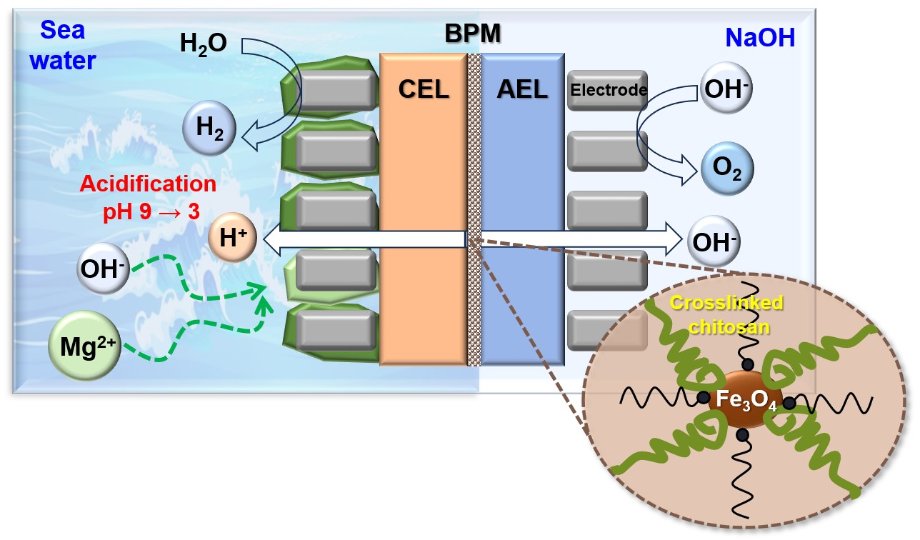 Chicago/Turabian StyleSong, Hyeon-Bee, Eun-Hye Jang, and Moon-Sung Kang. 2026. "A Bipolar Membrane Containing Core–Shell Structured Fe3O4-Chitosan Nanoparticles for Direct Seawater Electrolysis" Membranes 16, no. 1: 23. https://doi.org/10.3390/membranes16010023