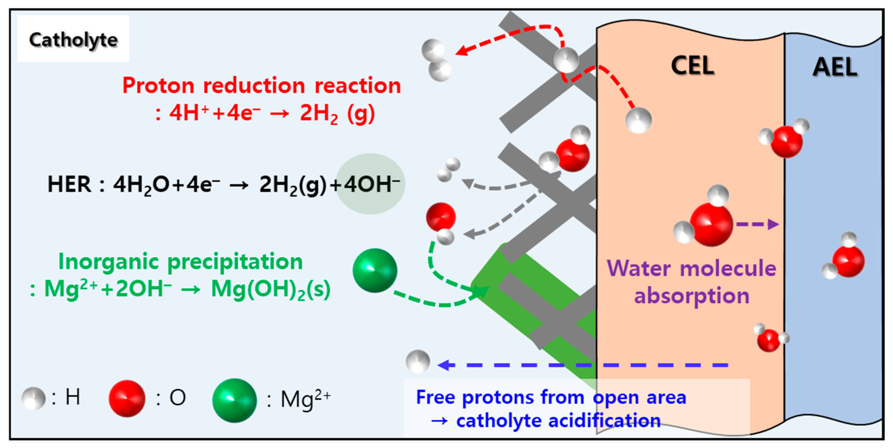 - Han, J.-H.; Jwa, E.; Lee, H.; Kim, E.J.; Nam, J.-Y.; Hwang, K.S.; Jeong, N.; Choi, J.; Kim, H.; Jeung, Y.-C.; et al. Direct seawater electrolysis via synergistic acidification by inorganic precipitation and proton flux from bipolar membrane. Chem. Eng. J. 2022, 429, 132383. [Google Scholar] [CrossRef]