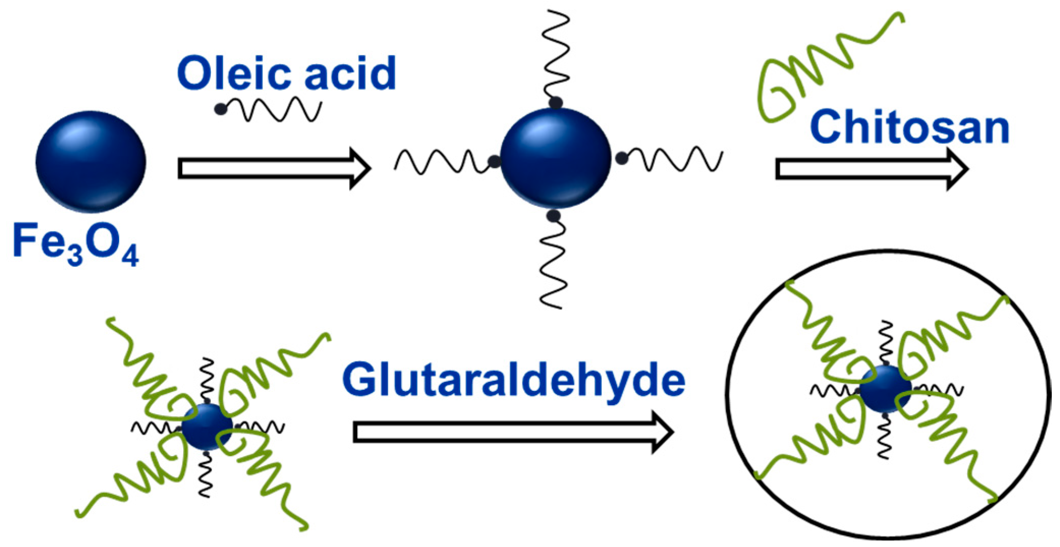 - Pham, X.N.; Nguyen, T.P.; Pham, T.N.; Tran, T.T.N.; Tran, T.V.T. Synthesis and characterization of chitosan-coated magnetite nanoparticles and their application in curcumin drug delivery. Adv. Nat. Sci. Nanosci. Nanotechnol. 2016, 7, 045010. [Google Scholar] [CrossRef]